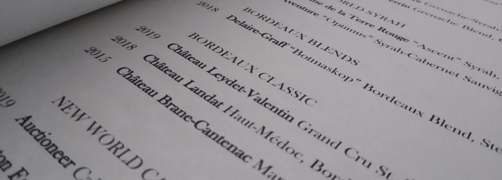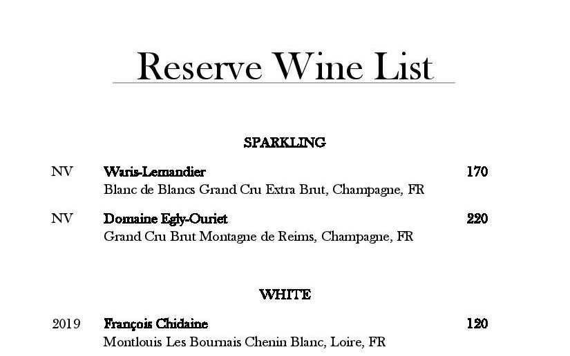 Reserve Wine List
